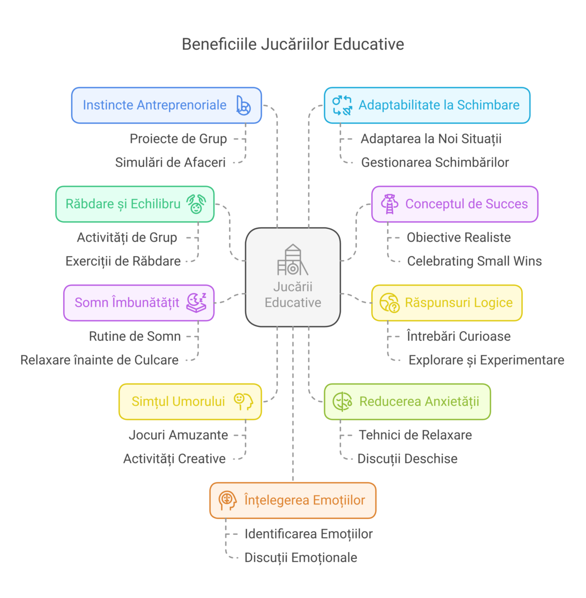 Jucăriile educative îi învață pe copii să accepte că lucrurile nu merg întotdeauna conform planului. De exemplu, jocurile de construcție care se prăbușesc le arată că trebuie să găsească soluții noi, iar acest lucru îi ajută să fie mai flexibili în viață.